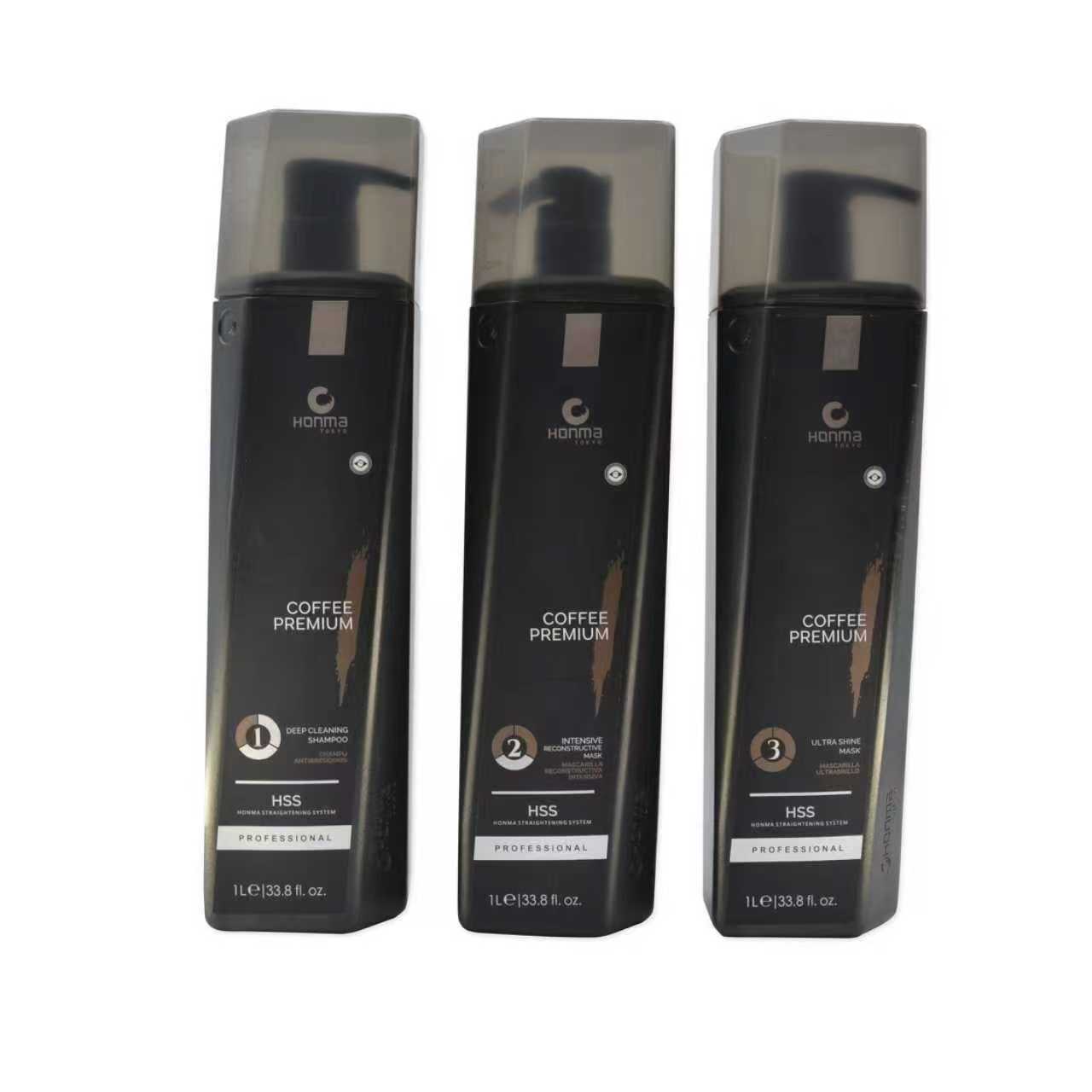 Experience salon-quality results at home with the Honma Coffee Hair Straightening Treatment. This expert three-step system begins with a cleansing shampoo that prepares your hair by removing impurities. Next, the intensive reconstruction mask deeply repairs and strengthens strands for lasting smoothness. Finally, the finishing mask locks in the treatment, leaving hair sleek, manageable, and frizz-free. Perfect for restoring damaged hair while achieving a straight, glossy finish.