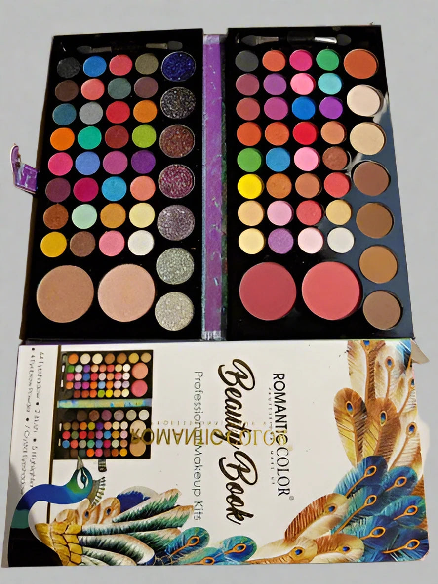 Unlock your inner artist with the Romantic Colour Beauty Book! This professional makeup kit boasts 64 eyeshadows, 2 blushes, 5 highlighters, 4 eyebrow powders, and 7 crystal eyeshadows. From everyday looks to bold and dramatic styles, this versatile and high-quality kit has you covered. Elevate your makeup game and unleash your creativity with endless possibilities.